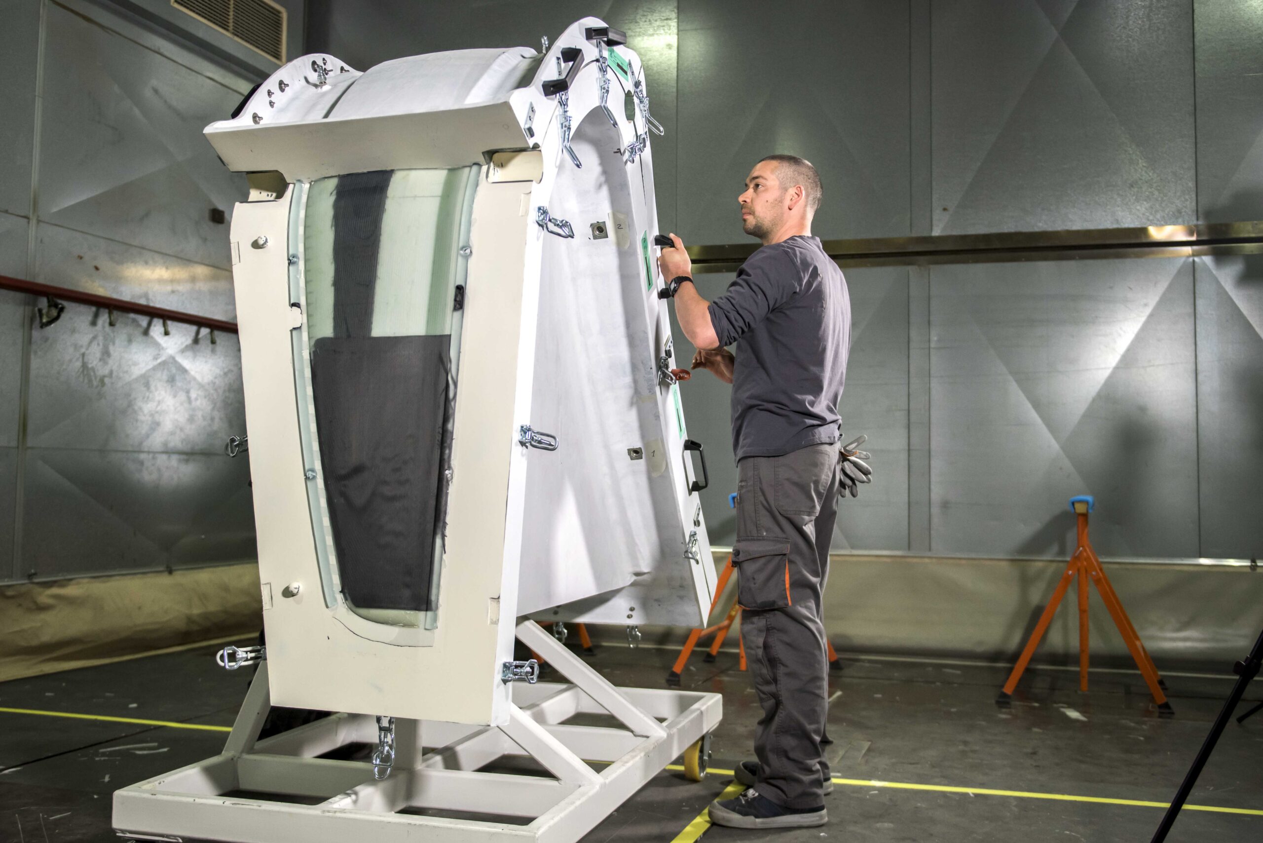 - Positionner les fibres sèches (carbone ou verre…) ainsi que les inserts et les mousses d'âmes dans le moule ou sur un marbre,